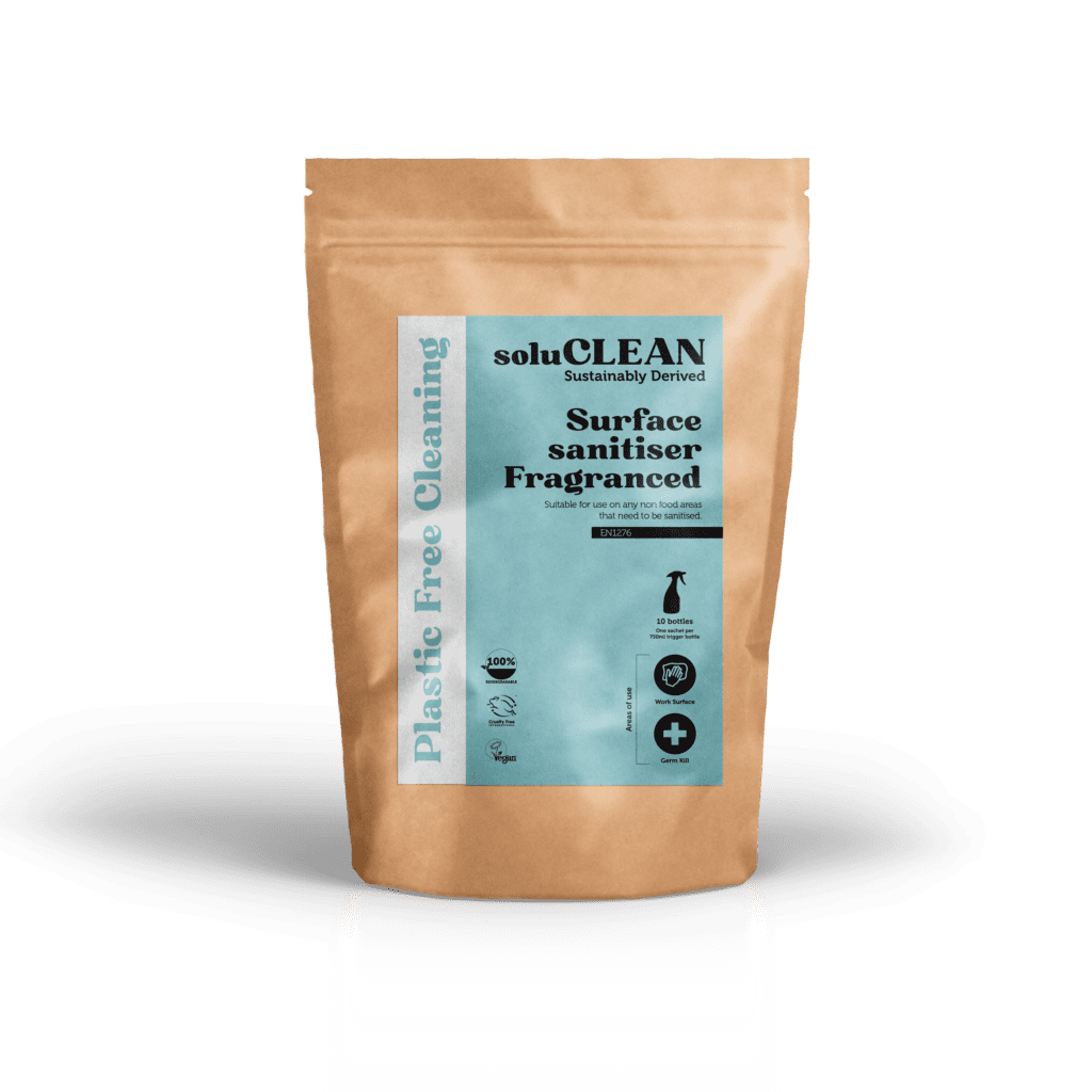 The soluCLEAN Surface Sanitiser has been tested under dirty conditions and is tested to BSEN 1276. With this product, no pre-clean is required and it is suitable for use on all hard surfaces, leaving behind a long lasting mango and peony fragrance. Once diluted, there is a minimum 28 day performance.