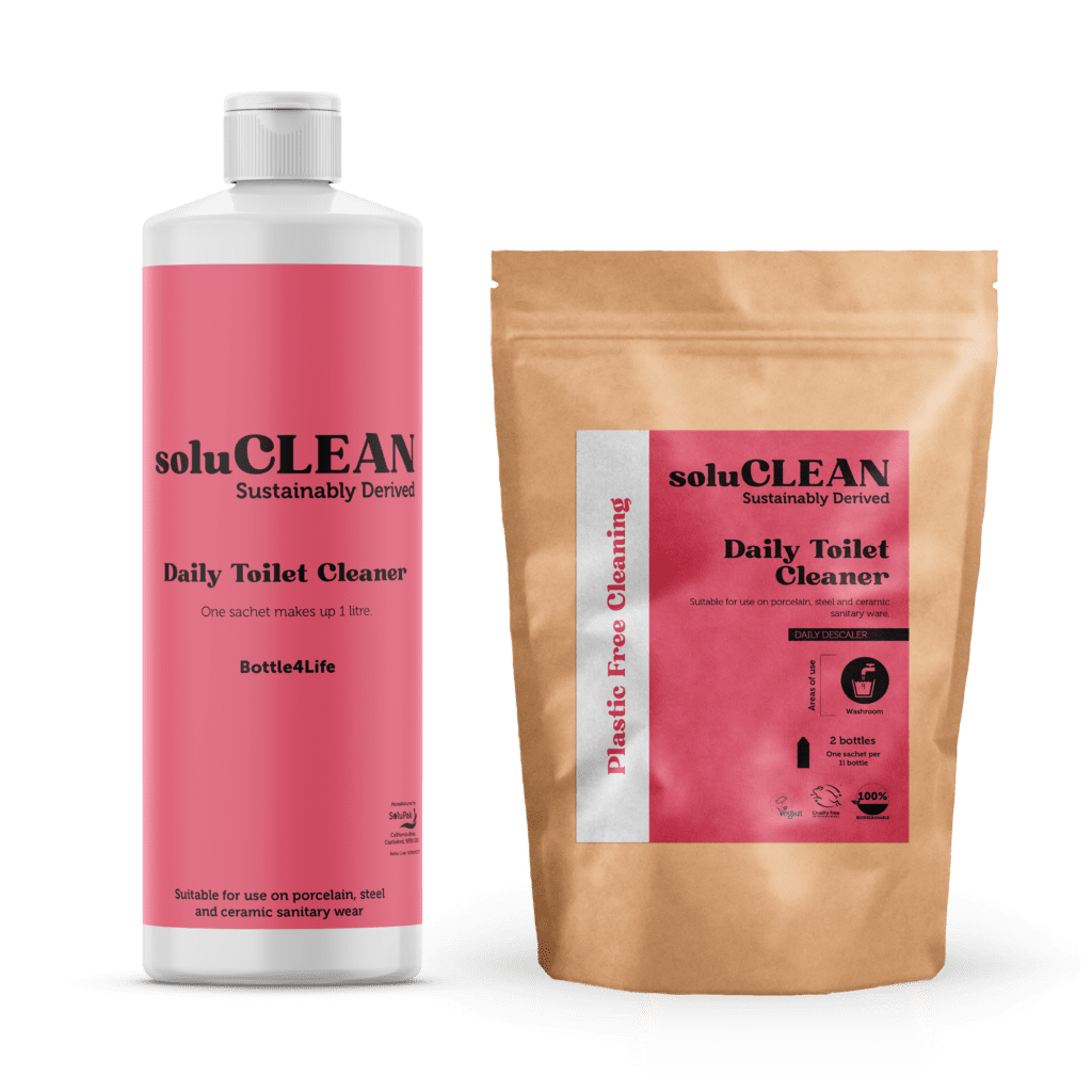 The soluCLEAN Toilet Cleaner has increased viscosity to cling to the toilet basin, as well as a built in de-scaler too. Our acidic toilet cleaner rids the toilet of bacteria while eliminating bad odours and leaves behind a pleasant and fresh smell of violet & jasmine Suitable for use on porcelain, ceramic and stainless…